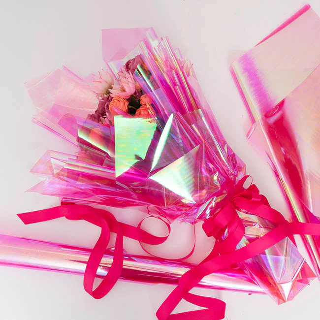 Cello Iridescent 40mic Transparent Pink Pack 100 (50x70cm)