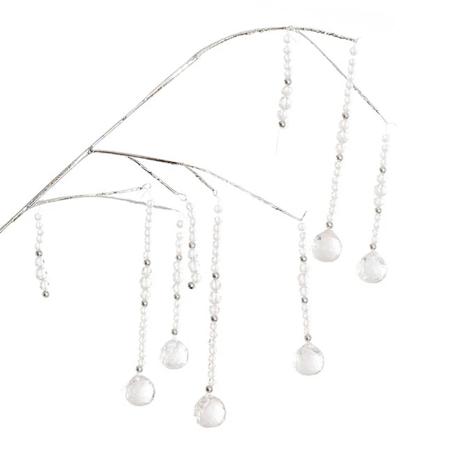 Enhance your decor with our Elegant Acrylic Crystal Cascading Spray in Silver. This sophisticated spray features a stunning mix of small and large clear dangling crystals, creating a dynamic and shimmering effect from a sleek silver stem. Perfect for adding a touch of luxury to centrepieces, floral arrangements, or special occasions, it brings a refined and sparkling charm that elevates the elegance of any setting.