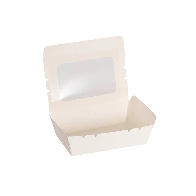 Made from 250gsm food grade ivory board, this white box with window dislays your contents well.